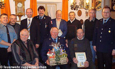 Arnstorf. Die Ehrung langjähriger Förderer und Gönner gehört zum schönen Brauch bei der Jahresversammlung der Feuerwehr Ruppertskirchen (wir berichteten). Mit Händedruck und Urkunden bedankten sich Vorstand Robert Lindner, Kommandant Georg Stadler und Bürgermeister Alfons Sittinger für die jahrzehntelange Treue und Unterstützung. Für 25 Jahre wurden Franz Bernetzeder, Martin Eberl, Benno Forster, Otto Froschauer, Franz Glück, Paul Heller, Robert Hölzl, Adolf Huber, Josef Huber, Alois Raimann, Franz Rimböck, Helmut Schneiderbauer und Herbert Steiger ausgezeichnet. Bernhard Maier, Anton Schott und Johann Steiner galt der Dank für 40 Jahre. Bereits seit 60 Jahren identifizieren sich Karl Büchner und Josef Eder mit den Aufgaben und Zielen des Vereins und sogar schon seit 70 Jahren gehören Johann Sporrer, Anton Bauer und Xaver Graser dazu. Weil er noch vor Inkrafttreten der Neuregelung das 60. Lebensjahr vollendet hat, ist es für Georg Eiblmeier an der Zeit, Schutzanzug und Helm an den berühmten Nagel zu hängen. Vorstand und Kommandant versüßten das Ausscheiden mit einem prächtigen Geschenkkorb, Bürgermeister Sittinger überreichte ein Marktkrügerl. -Ehrende und Geehrte (sitzend, von links): Josef Huber, Georg Eiblmeier und Karl Büchner sowie (stehend, von links) Paul Heller, Herbert Steiger, Bürgermeister Alfons Sittinger, Kommandant Georg Stadler, Franz Bernetzeder, Otto Froschauer, Franz Glück und Vorstand Robert Lindner. cm