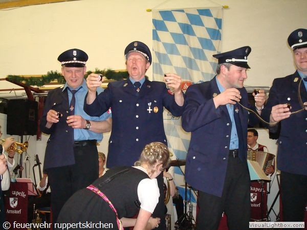 Aber erst, als die dritte Prüfung auf dem obligatorischen Holzscheit zur Zufriedenheit erfüllt war, sprach Ruppertskirchens Vorstand Robert Lindner das erlösende Ja. Nun stand einer fröhlichen Feier mit musikalischer Begleitung durch die Blaskapelle Arnstorf und der Vorfreude auf ein schönes Fest nichts mehr im Wege.Rottaler Anzeiger vom 23.03.2011 www.pnp.de