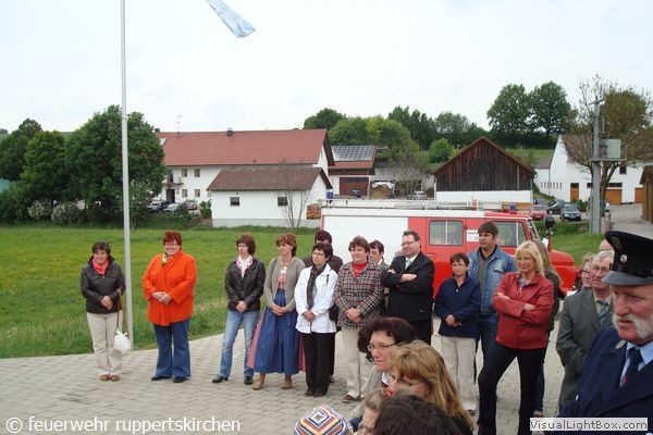 Zu Beginn des Festaktes vor dem Gerätehaus hatte Vorstand Robert Lindner die Feuerwehrfrauen und -männern in Uniform willkommen geheißen und sich über das Interesse zahlreicher „ziviler“ Gäste gefreut. Sein besonderer Gruß galt den Ehrengästen, darunter 2. Bürgermeister Johann Brunner, Ehrenfahnenmutter Anna Eberl und Fahnenmutter Christine Ebenbeck, Ehrenvorstand Josef Huber, Ehrenkommandant Michael Lindner und Ehrenmitglied Karl Büchner.Rottaler Anzeiger vom 19.05.2011 www.pnp.de
