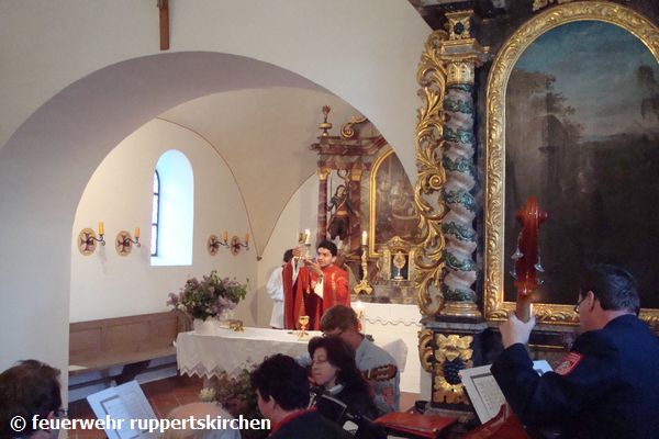 Zusammen mit Schirmherrn und 2. Bürgermeister Hans Brunner und einer Abordnung der Kameraden der Arnstorfer Feuerwehr zog man mit Marschmusik der Arnstorfer Blaskapelle hinauf zur Kirche. Pater Kuriakose zelebrierte den feierlichen Gottesdienst bei dem dem Hl. Florian gedacht wurde. Helga Heller, Andreas Graser, Brigitte und Alois Bachmaier von der Arnstorfer Hausmusi umrahmten den Gottesdienst musikalisch.