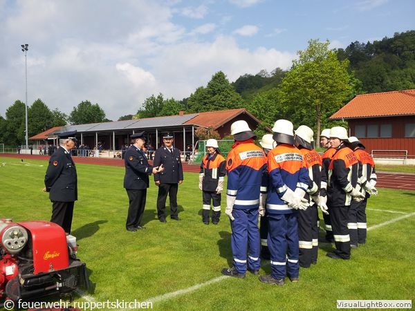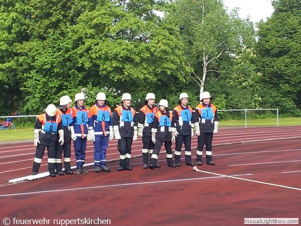 Zusammen in einer Gruppe mit Jugendfeuerwehrler aus Arnstorf, Mariakirchen und Hainberg-Neukirchen stellten sich Kreipl Veronika, Brunner Thomas, Stegmüller Florian, Büchner Christoph und Gerwallner Stefan dieser Prüfung im Jugendbereich der Feuerwehr. An 5 Stationen wurde Feuerwehrwissen und Sportliches Können unter Beweis gestellt. Insgesamt nahmen 11 Gruppen aus dem Landkreis Rottal-Inn und Mühldorf am Wettbewerb teil.