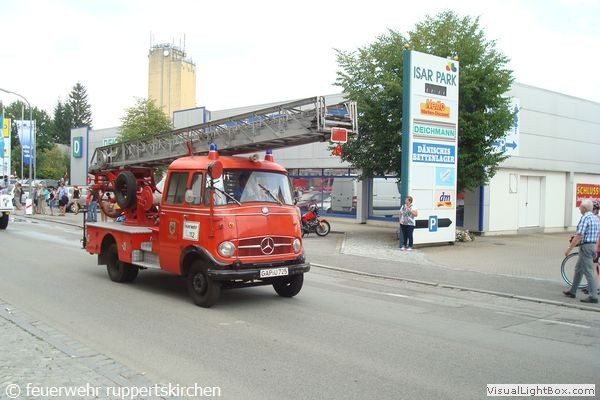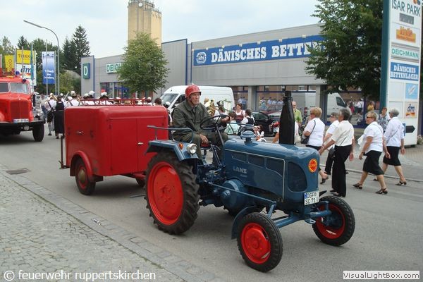 Wir beteiligten uns mit 24 Feuerwehrlern am Festzug, ebenfalls war unser Opel Blitz (Baujahr 1975) und der alte Tragkraftspritzenanhänger (Baujahr 1953)) TSA6 im Oldtimerzug mit dabei. Bereits um 7 Uhr morgens trafen wir uns zur Abfahrt nach Landau. Nach der gemeinsamen Stärkung beim "Oberen Krieger" mit Weißwürsten und nach dem feierlichen Gottesdienst mit Fahnensegnung stand der 3,5km lange Festzug durch die Isarstadt auf dem Festprogramm. Gegen 13 Uhr erreichten wir das Festgelände am Volksfestplatz.