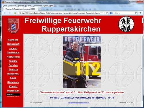 Nach über 10 Jahren und vielen, unzähligen Arbeitsstunden und nach einigen Überarbeitungen seitens Design und Inhalt bietet die Homepage nach wie vor interessantes und aktuelles um die Ruppertskirchner Feuerwehr sowohl für Mitglieder als auch für die Öffentlichkeit.