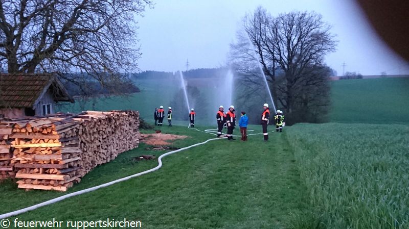 Im Bereich Ruppertskirchen/Kornöd  konnte kein Feuer oder Rauch festgestellt werden. Bei der weiteren Erkundung des Einsatzgebietes Ruppertskirchen und eines weiteren Hinweises konnte ein kontrolliertes beaufsichtigtes Wied verbrennen im Bereich Grafendorf/Volkstorf festgestellt werden. Da von dieser vorgefundenen Lage keine unmittelbare Gefahr ausging, rückten wir wieder ins Gerätehaus ein.