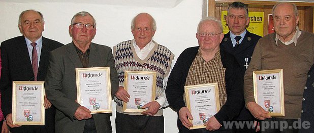 Aus den Reihen der 191 Förderer wurde Bernhard Eder, Ludwig Müller und Michael Müller für 25 Jahre Treue zum Verein gedankt. Urkunden durften Alois Brandl für 40 Jahre, Johann Brunner für 50 Jahre sowie Alfons Bachmaier, Martin Eberl sen. und Erwin Feilen für 60 Jahre Mitgliedschaft entgegen nehmen.