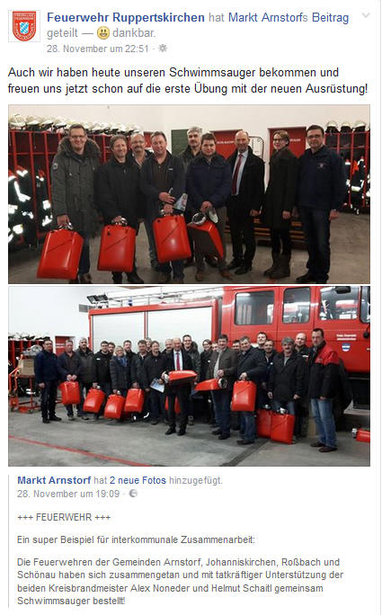 Facebook Beitrag des Markt Arnstorf zur Übergabe der Schwimmsauger:
