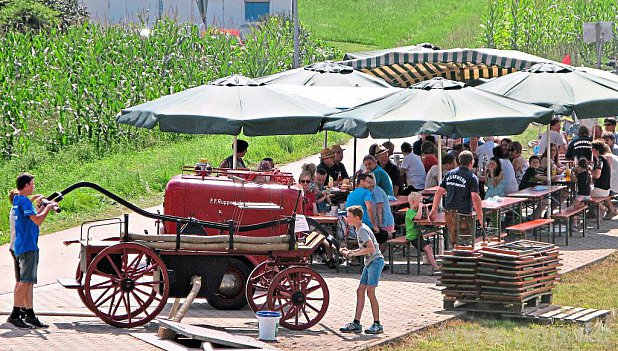 Arnstorf. Auch die zweite Auflage des Gartenfestes der Feuerwehr Ruppertskirchen war ein voller Erfolg. Schon zur Mittagszeit hatten die Helfer alle Hände voll zu tun, um die Gäste rund um das Gerätehaus, darunter Abordnungen vieler benachbarter Wehren, mit allerlei Schmankerl zu versorgen. Weil es auch Petrus gut mit der Wehr meinte und Sonne pur statt Regen schickte, hielt der Zustrom bis in die Abendstunden an. Abwechslung zur geselligen Unterhaltung an den Tischen und zum leiblichen Genuss brachte das Üben an altem Gerät für Jedermann. Ob die Handdruckspritze aus dem Jahr 1926 (Foto), die archaisch anmutende Leiter oder die Tragkraftspritze TSA 6 samt Anhänger, mit der die Wehr von 1953 bis 1963 zum Einsatz ausrückte: Sämtliche Gerätschaften forderten Jung und Alt immer wieder zum Testen der eigenen Kräfte heraus. "Die sind alle voll Eifer mit dabei und machen mir eine Riesenfreude", drückte Kommandant und Jugendleiter Anton Stadlbauer Anerkennung für den Arbeitseinsatz der Jugendgruppe rund um das Fest aus. Das besondere Lob von Stadlbauer wie auch von Vorstand Alois Gerwallner galt Carolin Büchner für die perfekte Organisation.