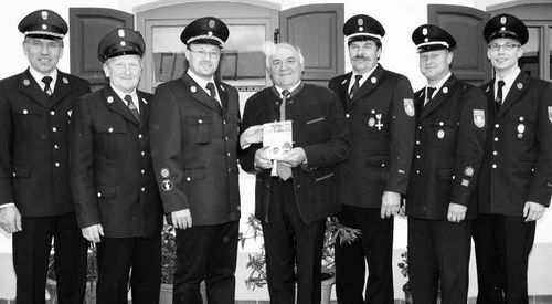 Freuen sich über die Festschrift der Feuerwehr Ruppertskirchen und hoffen auf viele Käufer dafür (von links): 2. Vorstand Alois Gerwallner, Otto Ebenbeck, Vorstand Robert Lindner, Schirmherr und 2. Bürgermeister Johann Brunner, Kommandant Georg Stadler, 2. Kommandant Anton Stadlbauer und Andreas Stadler. - cm/Foto: Machtl