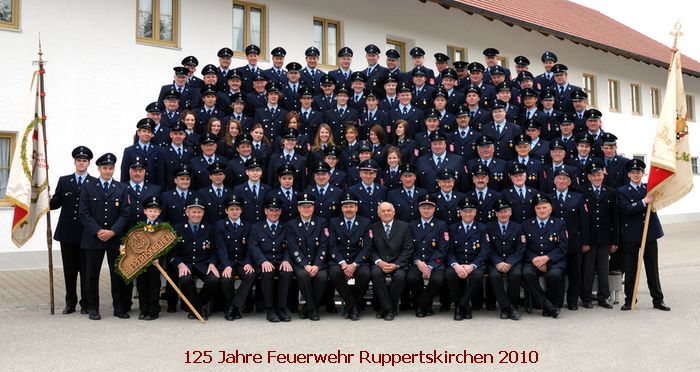 Die Freiwillige Feuerwehr Ruppertskirchen kann im Jahr 2010 stolz auf ihre Gründung vor 125 Jahren im Jahre 1885 zurückblicken. Mit einem dreitägigen Fest feierten wir dieses Jubiläum gemeinsam mit Gästen aus Nah und Fern bei uns im Dorf mit Zeltdisco, Festabend und Weihe der neuen Fahne gebührend.Die 22 Festausschussmitglieder kamen am 21. April 2008 zur ersten Festausschusssitzung zusammen. Es wurden Unterausschüsse gebildet welche sich mit den Themen "Festschrift", "Festzug", "Festgottesdienst", "Festbüro", "Festzelt" und "Zeltdisco" beschäftigten.